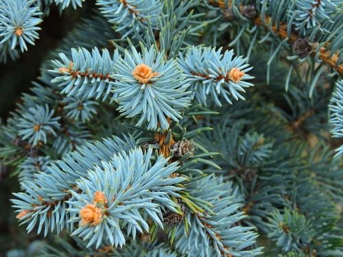 - Picea pungens (Glauca Group) ‘Hoopsii’ (Colorado spruce) – a medium-sized conifer with a neat conical form and thick silver-blue needles. It grows to 3m tall in 10-20 years. Likes a sunny spot with a humus-rich acidic or neutral soil.