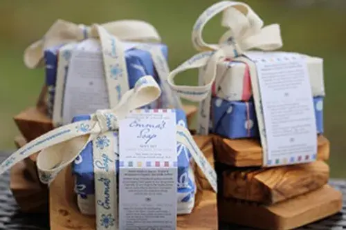 Write a review about "2 Bars of Jojoba soap on an Olive wood soap dish"