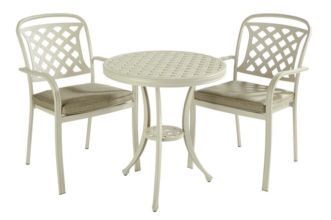 - Set includes: 1 x Bistro Table, 2 x Dining Chairs